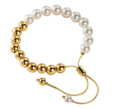 Pulsera ajustable de perlitas blancas y doradas de acero inoxidable.