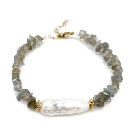 Un espectáculo de color natural Olvídate de los accesorios comunes. Cada cuenta de este brazalete es una pieza de Labradorita auténtica, un mineral exótico extraído en Canadá y Madagascar. Su superficie atrapa la luz revelando una iridiscencia única en tonos turquesas y verdes profundos. Lleva contigo la belleza de la naturaleza.