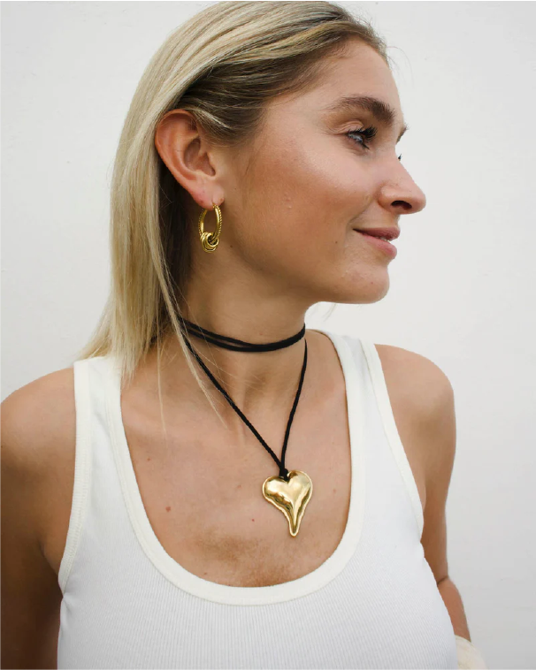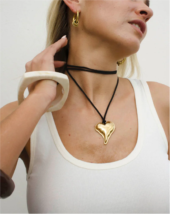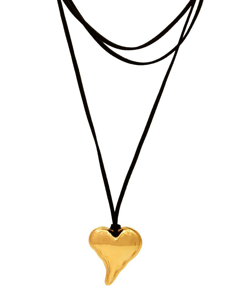 Collar de acero con baño en oro de 18K en forma de corazón.